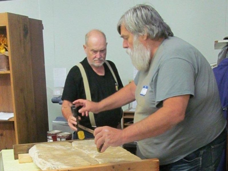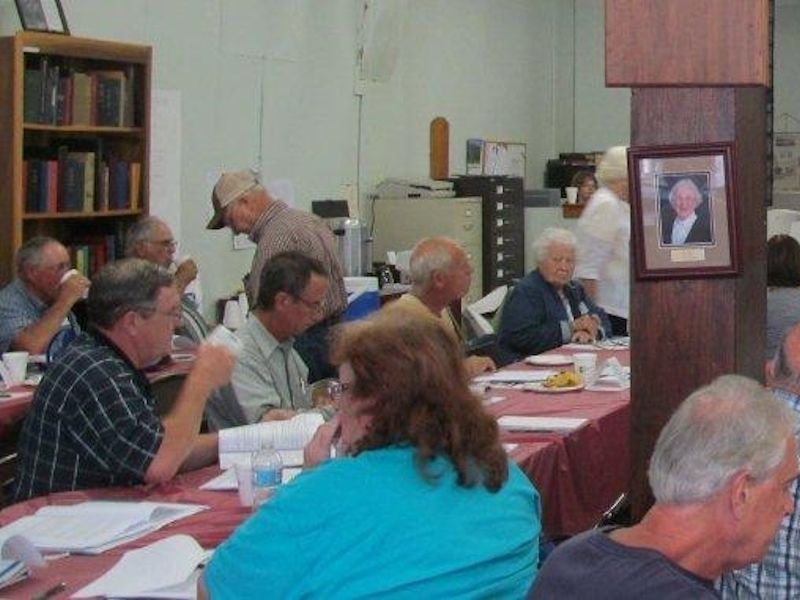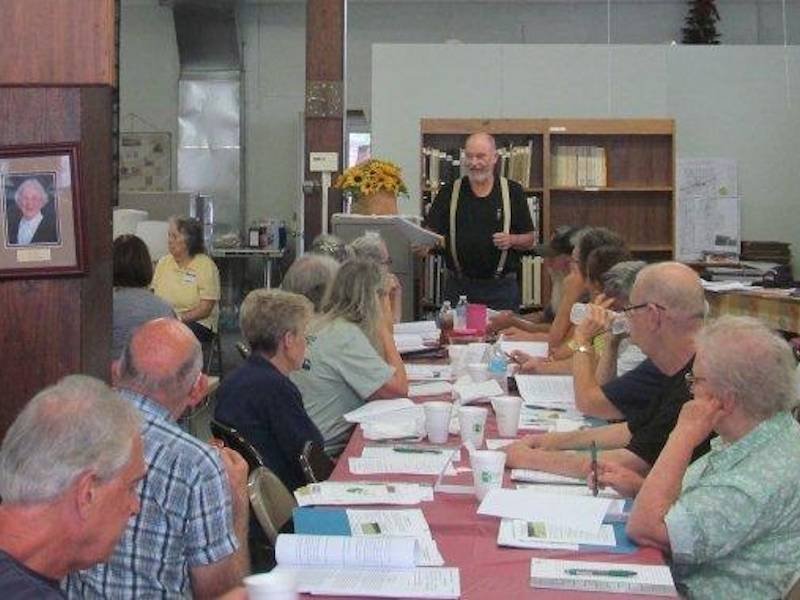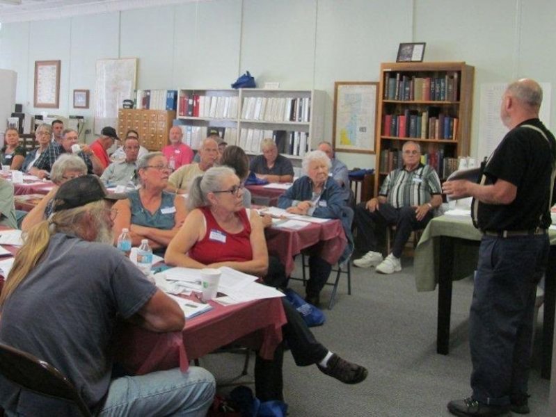 During the workshop instructors Wayne LANGMAN and Jeff DICKERSON discussed their handout, which included information about tools and products to use for cleaning, resetting, and repairing damaged and broken stones. The handout gave step-by-step information and included helpful photographs. After the morning classroom instruction and lunch, the group planned on going to the historic section of the Center Point Cemetery for hands-on work cleaning, resetting, and repairing broken stones.